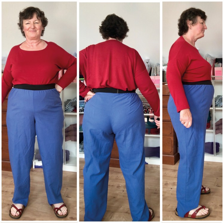 This is the toile – I didn’t include pockets and just added wide elastic for the waistband on this mock-up. They felt fine standing up but too tight sitting down.