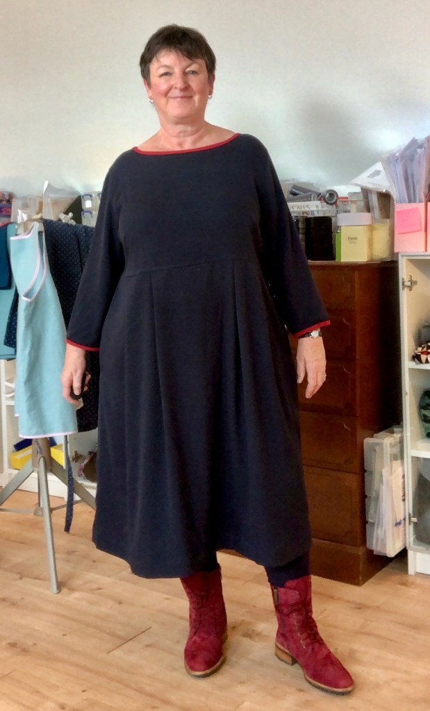Some time ago I ordered 6 metres of ‘linen’ and what arrived was this. I hung on to it even though the company said I could send it back. It was a reasonable price. I’m not sure what it is, but it takes a very hot iron. It’s kind of brushed and soft on the inside and smooth on the outside. My guess would be a viscose twill. Anyway it’s really comfortable to wear and lovely and drapey. It will be so cosy in the winter.