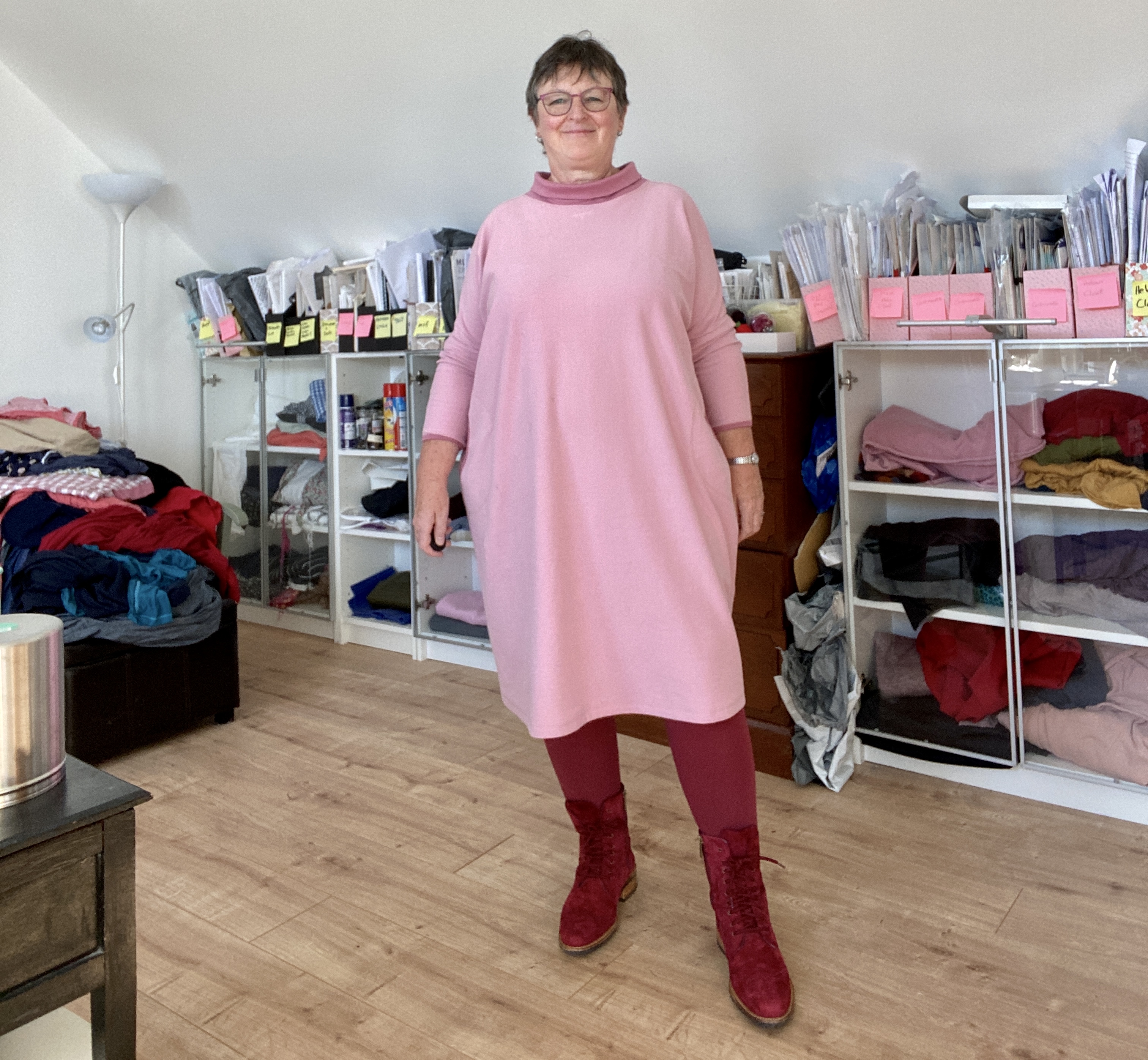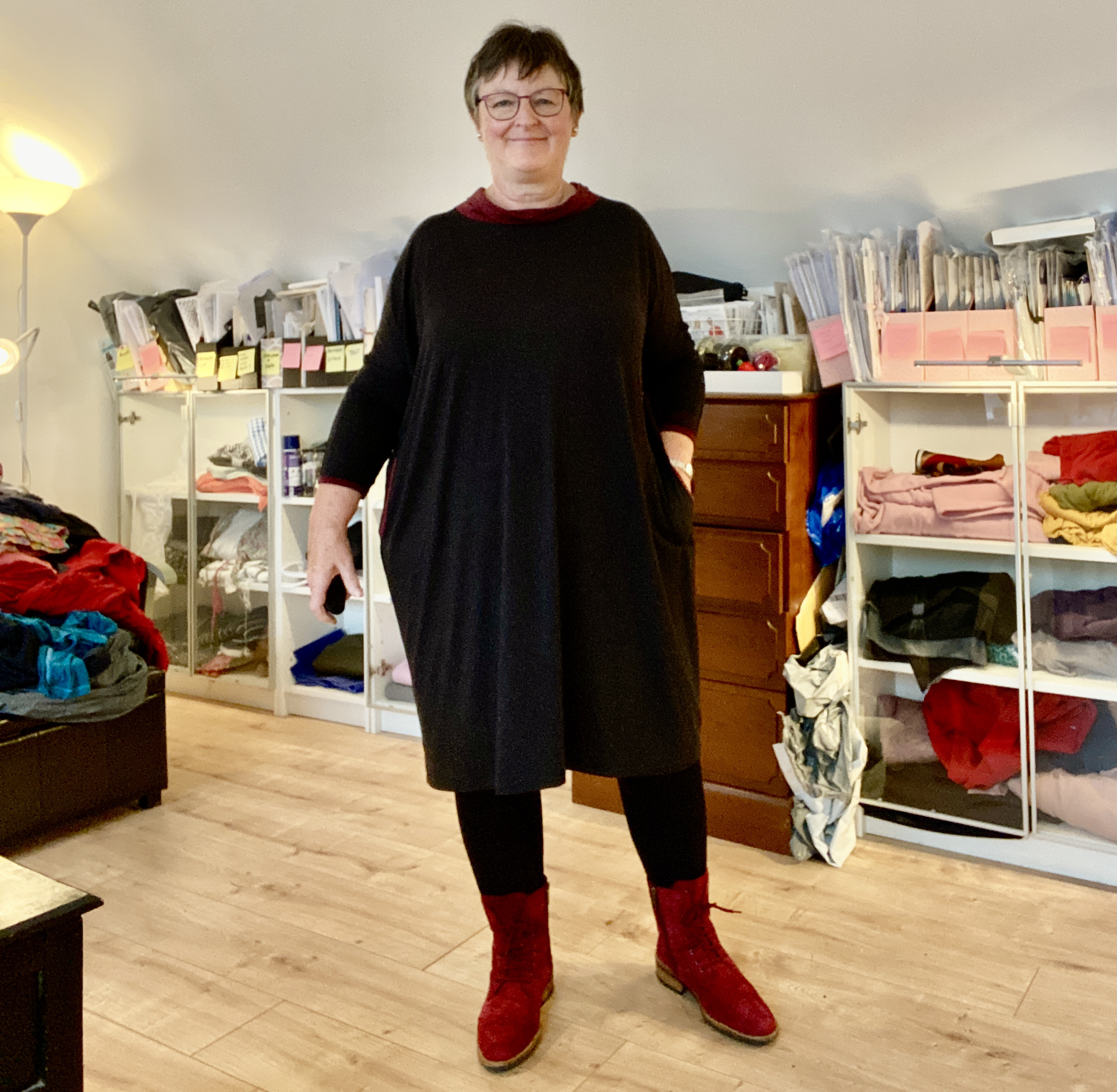 I like that this style has no waistline elastic or anything, it makes it so comfortable. After the first version (charcoal jersey) where I graded from size 18-20, I made the others in size 20 but exaggerated the cocoon seam in the back by tapering if off a little more towards the end.