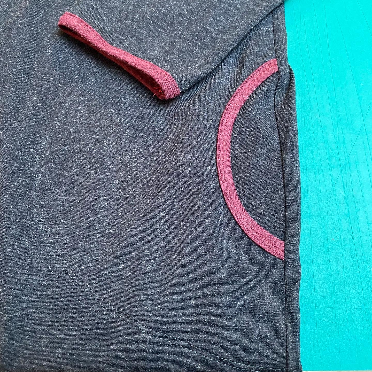 I used the binder attachment on my Coverstitch to bind the sleeves and pockets.