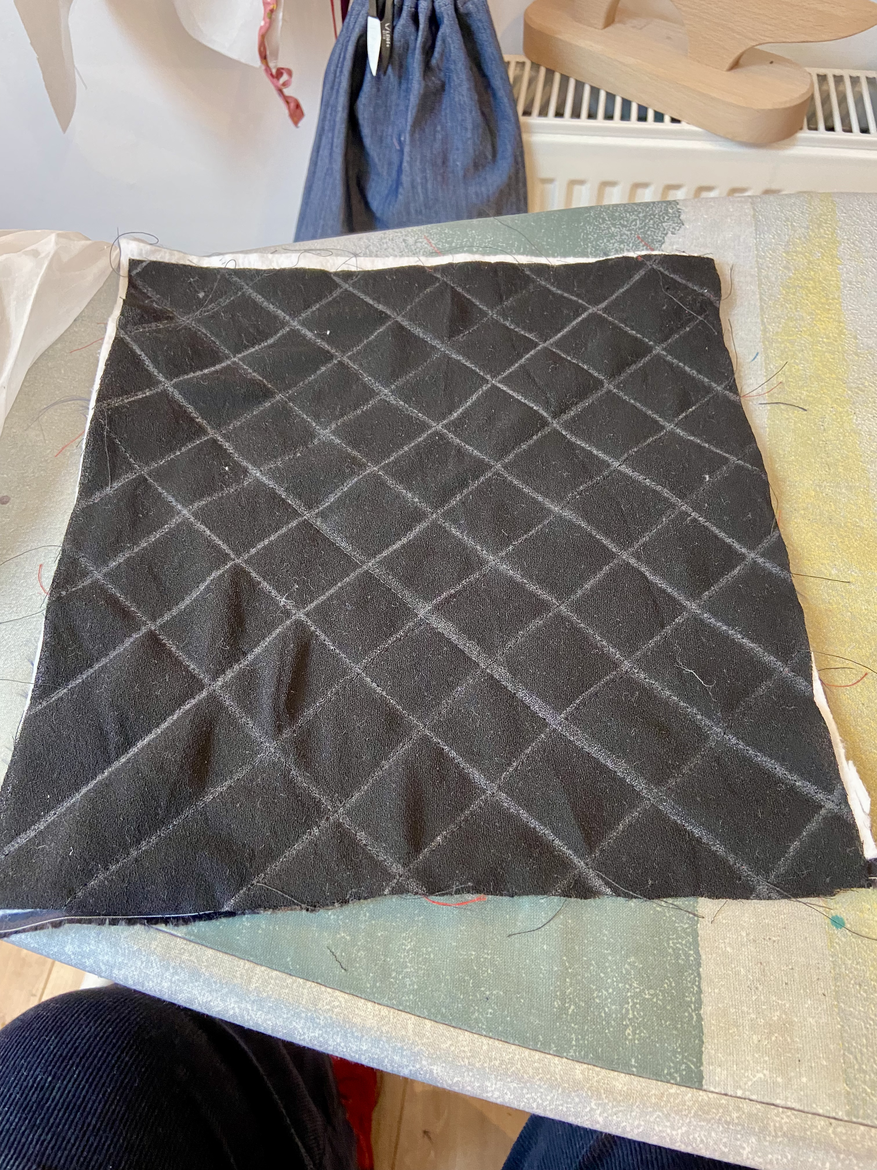 The sleeves of this jacket are quilted with batting sandwiched between lining and the outer fabric. My outer fabric is wool crepe and it was tricky to quilt as it has a kind of natural stretch. If I were making again, I would choose a more stable fabric for the sleeves. The lining is a lovely quality Bemberg.