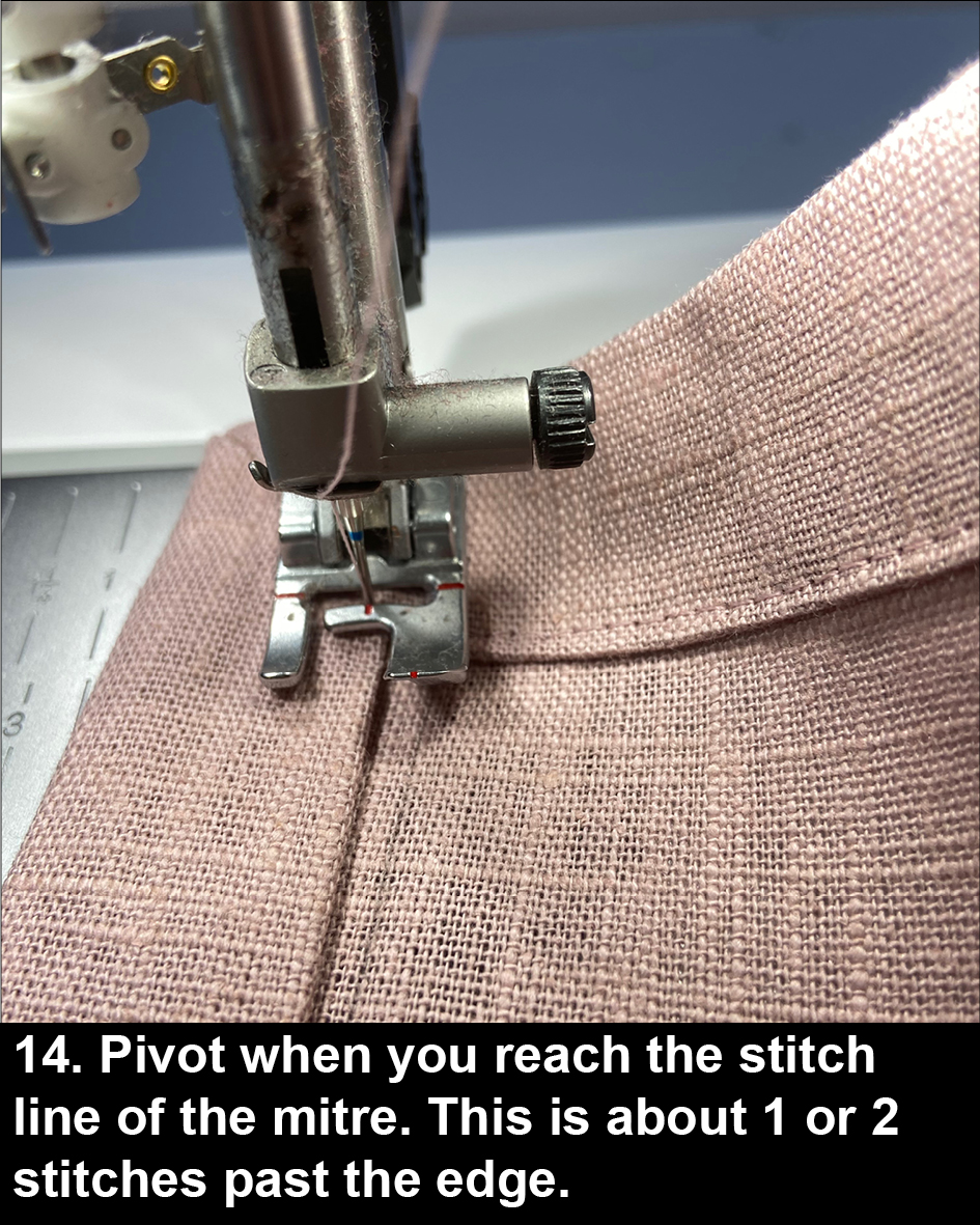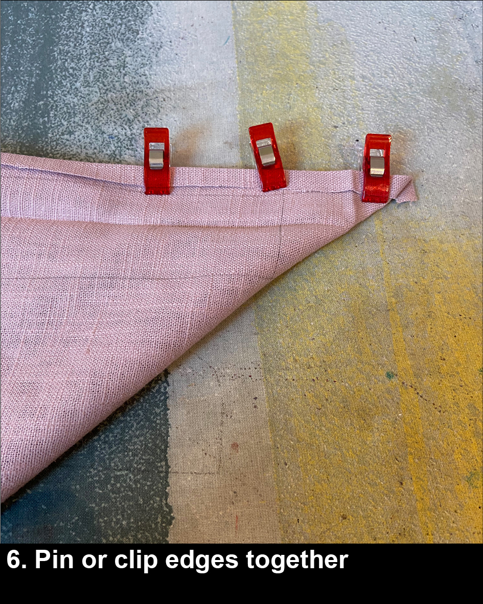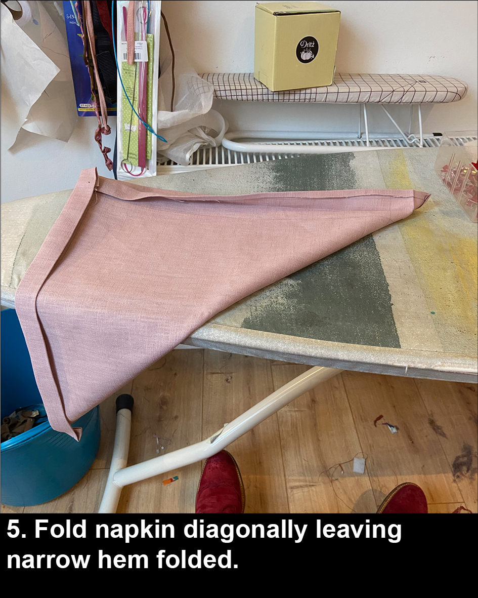 These pictures show napkins, but you can use the same technique for things like skirt splits. I also use it for the bottom corners of patch pockets before I sew them on. It reduces bulk and avoids sticky-out bits.