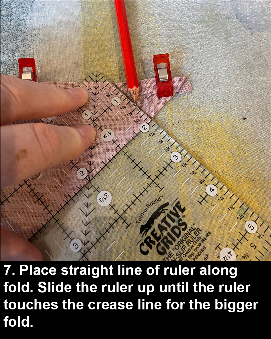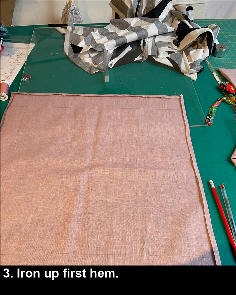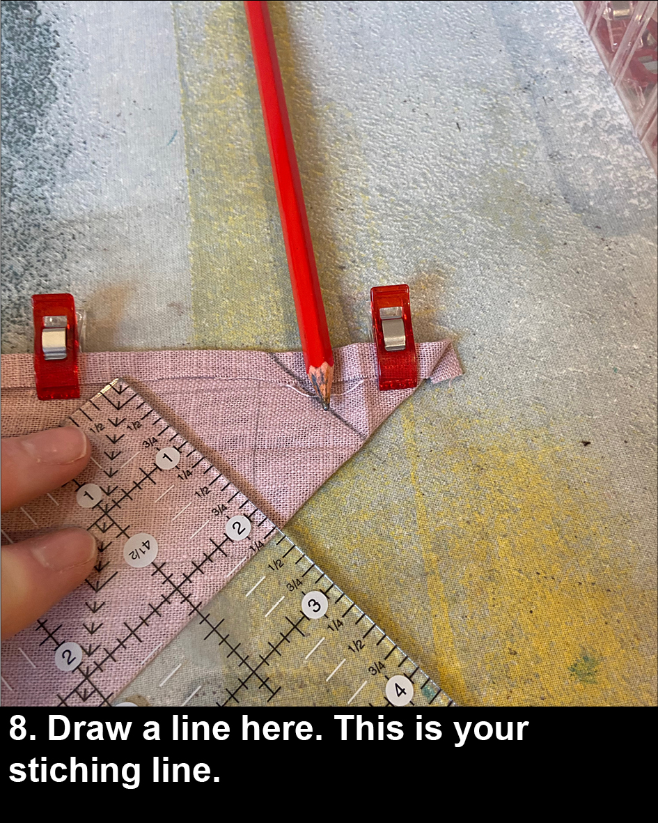 These pictures show napkins, but you can use the same technique for things like skirt splits. I also use it for the bottom corners of patch pockets before I sew them on. It reduces bulk and avoids sticky-out bits.